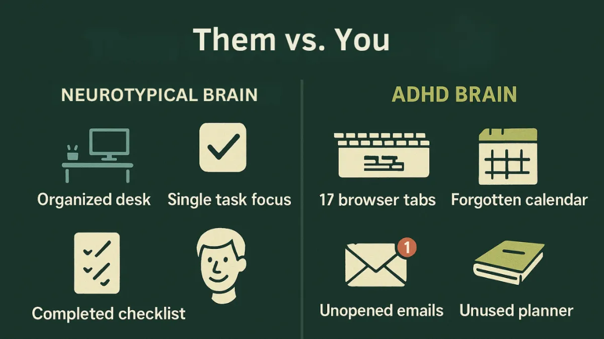 I was missing 3-4 deadlines a month. Constantly apologizing. Always behind. Burning out trying to force my brain to work "normally."